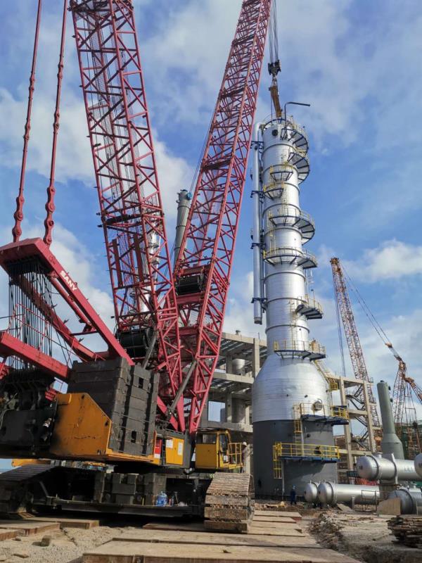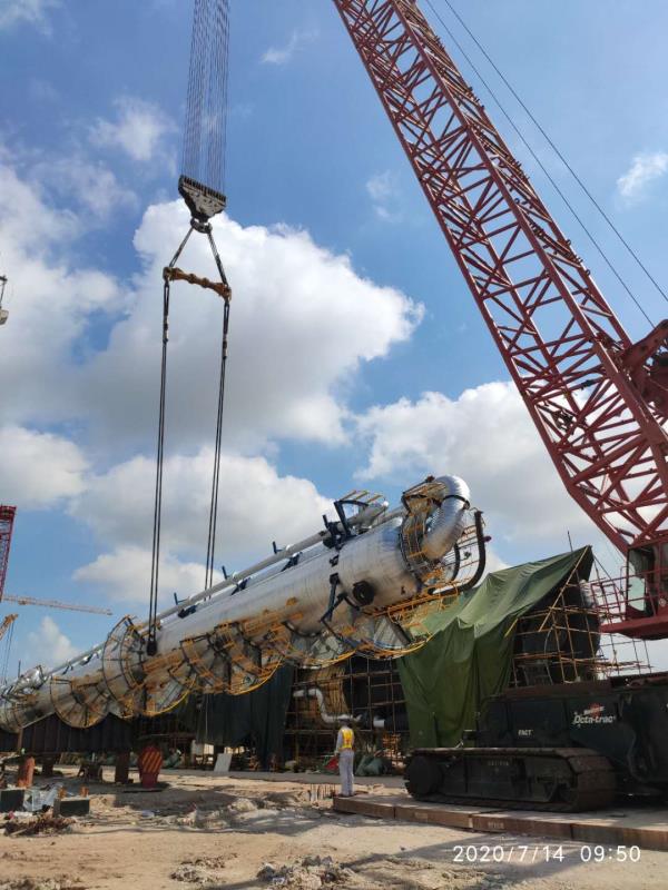 近日中國化學工程天辰公司廣西華誼項目CO2產品塔整體成功吊裝就位,標志著廣西華誼項目設備安裝工程進入沖刺階段。