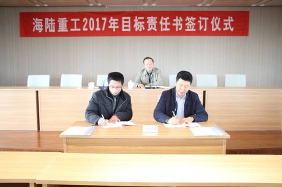 2月6日,新春伊始,為實現公司的持續快速發展,順利完成年度經營計劃,貫徹落實公司績效管理政策, 2017《績效目標責任書》的簽訂儀式。責任書明確了公司事業部和責任主體的權利與義務,并對各事業部經營與管理任務指標進一步量化了考核標準,在公司原有考核獎勵機制、績效考評等基礎上進行了優化與改進。會上董事長徐元生做了重要講話,徐總指出一年之際在于春,2017年各部門目標責任書的簽訂,對于公司的未來發展,意義非凡。目標責任書的簽訂,只是一個起點,這個起點是理性的,務實的,也是富有激情的。最后,徐總希望簽約的各位領導干部壯志在我心,揚鞭在腳下,快速地行動起來!用樂觀自信的態度,拿出全力以赴的精神,充分展現自己的才能,注重上下團結協作,發揮自己聰明才智,創造出海陸重工2017年新的輝煌。