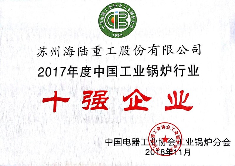 “2017年度中國工業鍋爐行業出口創匯先進企業”